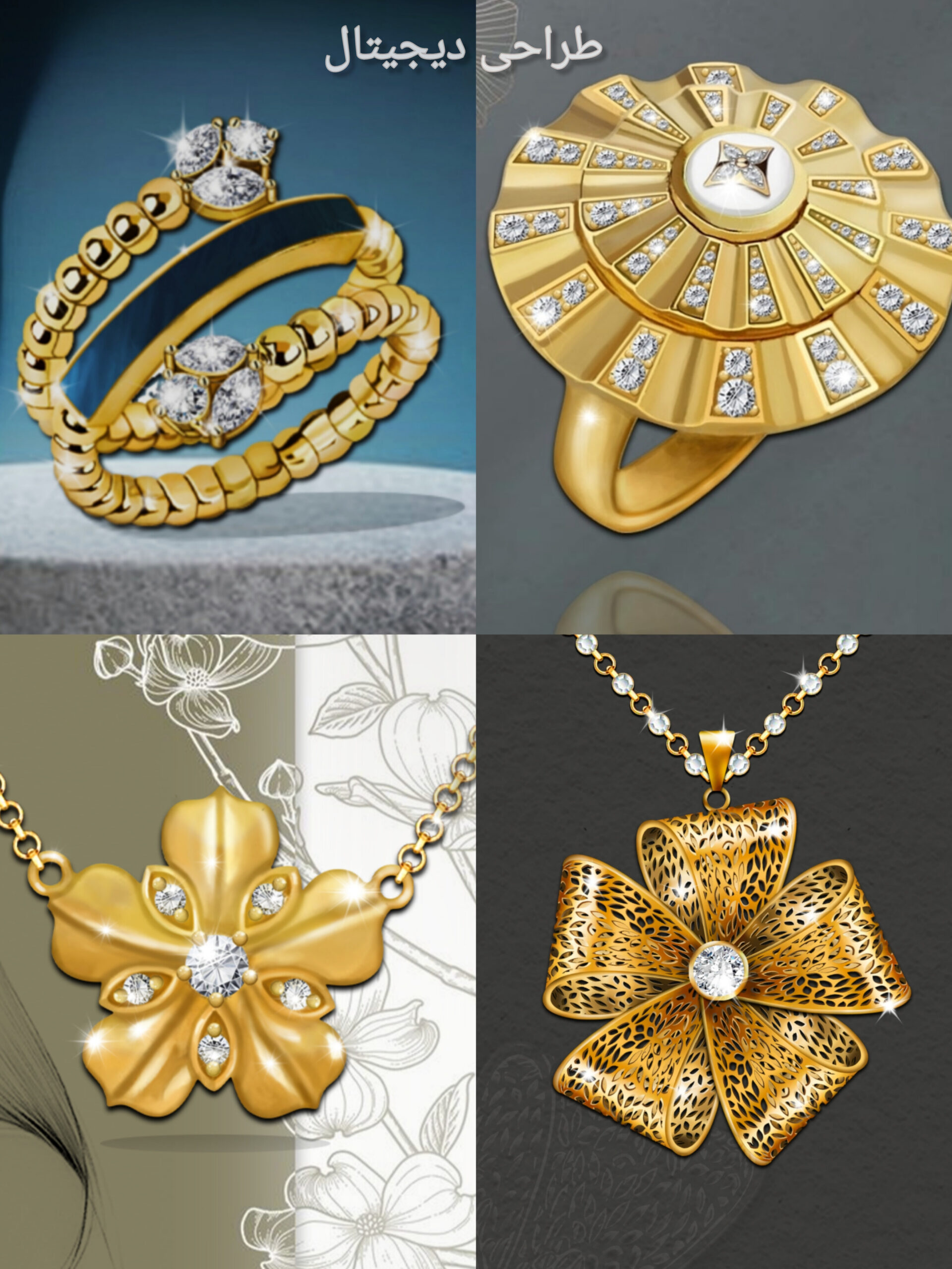 طراحی انواع زیورآلات و مصنوعات طلا و نقره اعم از ست نیم ست سرویس مردانه کودک فیوژن بنگل النگو.......